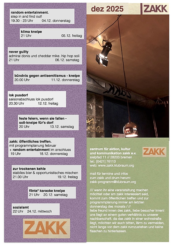 Aktuelles Monatsprogramm: zakk programm 25 / 26