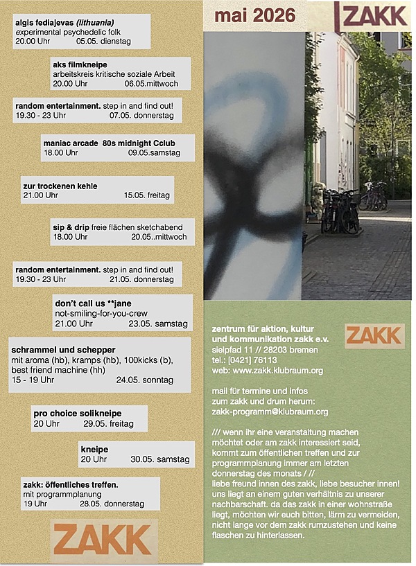 Aktuelles Monatsprogramm: zakk programm 25 / 26